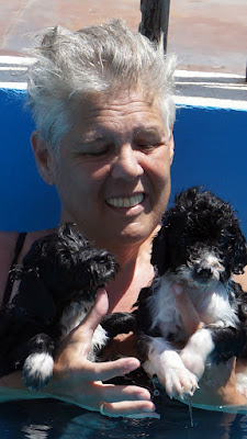 Pupsters first swimming lesson. Maybelle came to help
