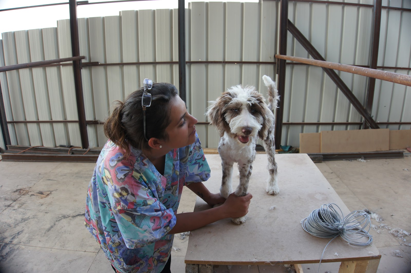 | Ginger getting her first haircut. Ginger is 21/2 month old female meryl with 2 blue eyes available for sale |