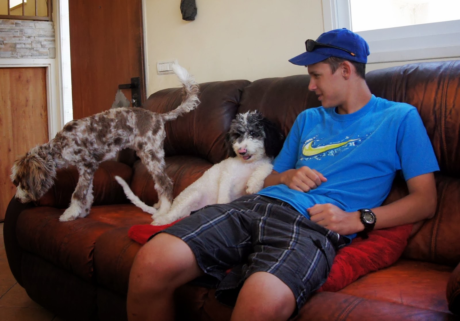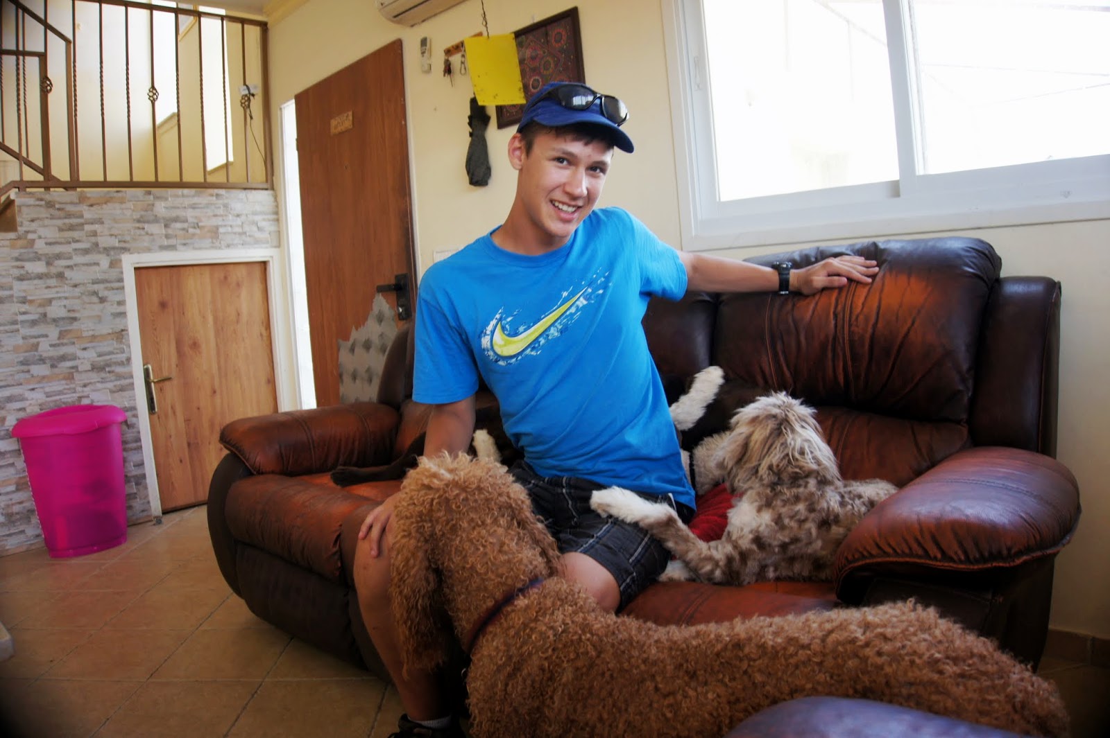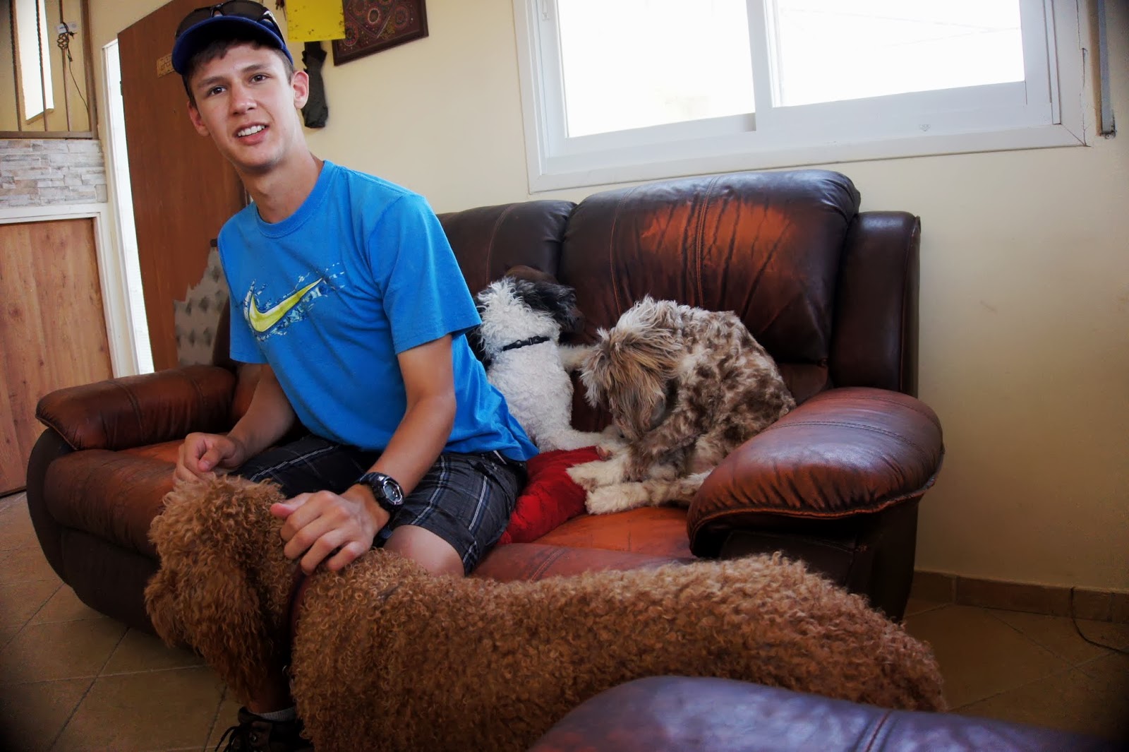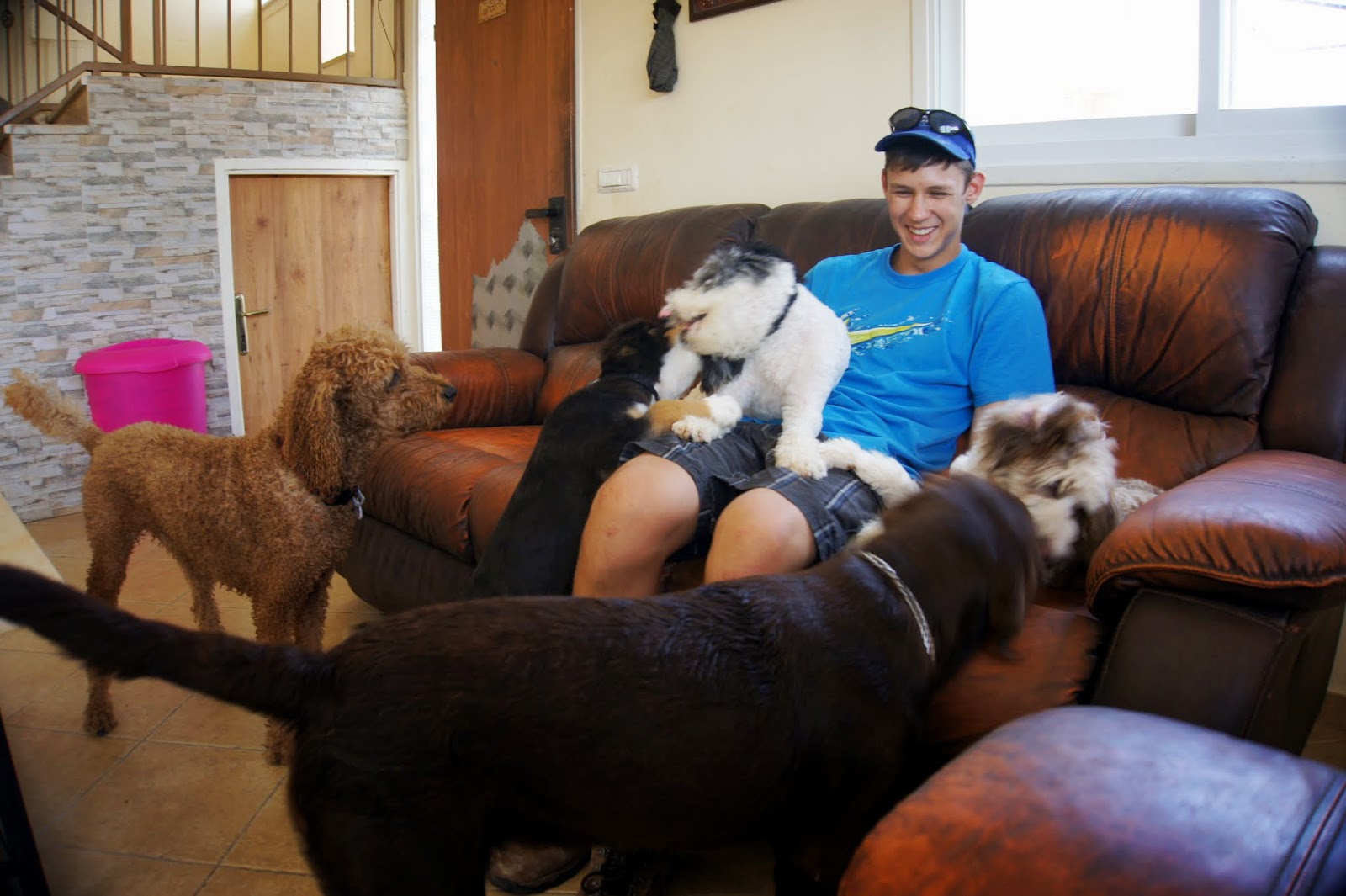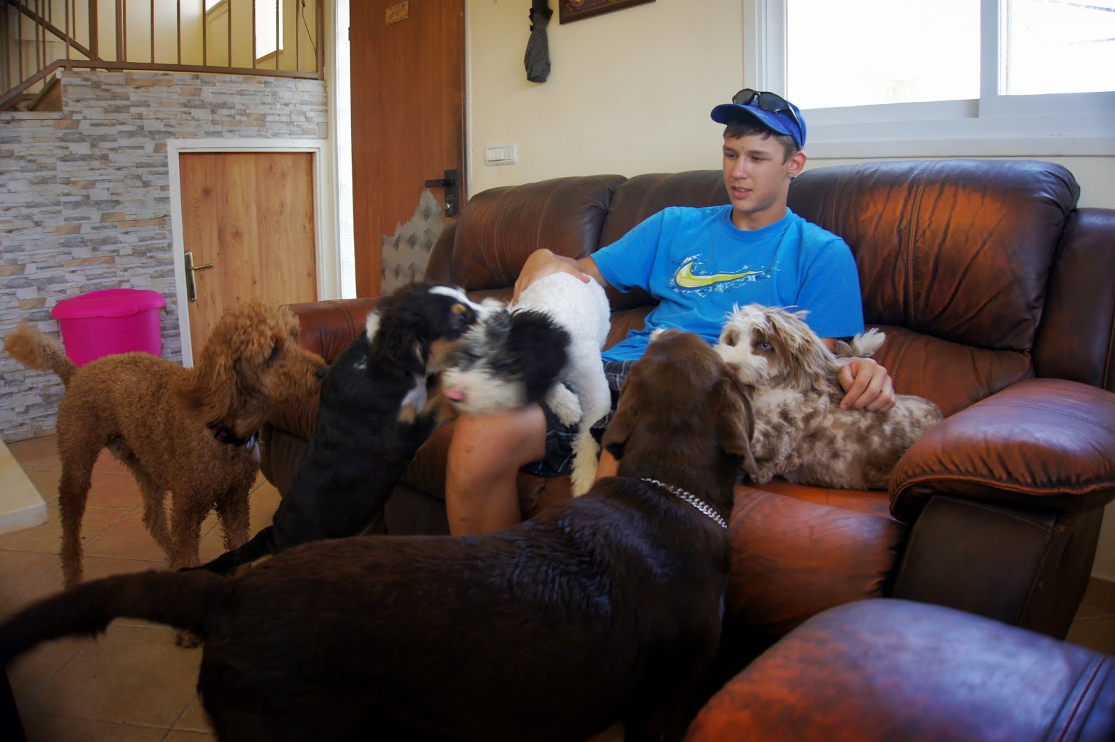Yair getting to know the dogs..He hopes to be a veterinarian