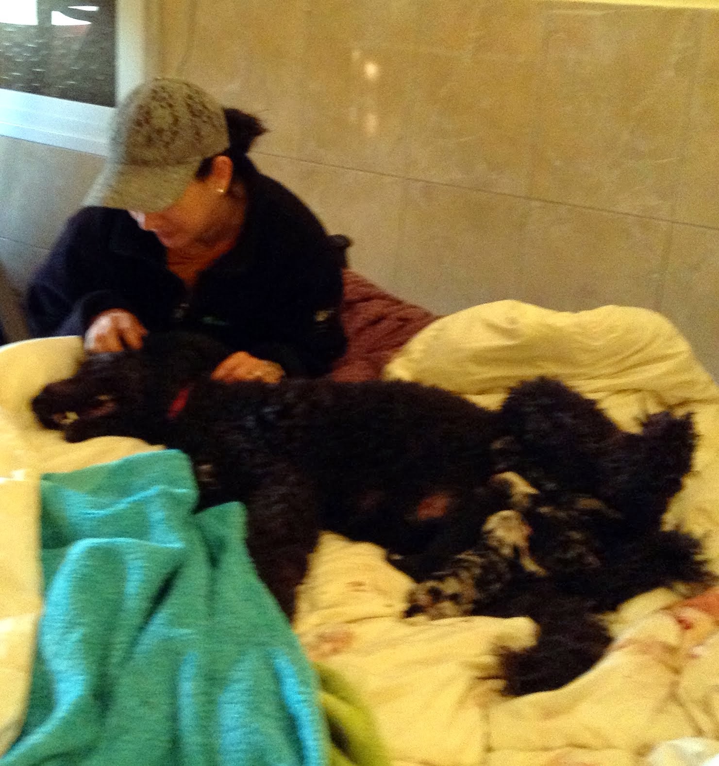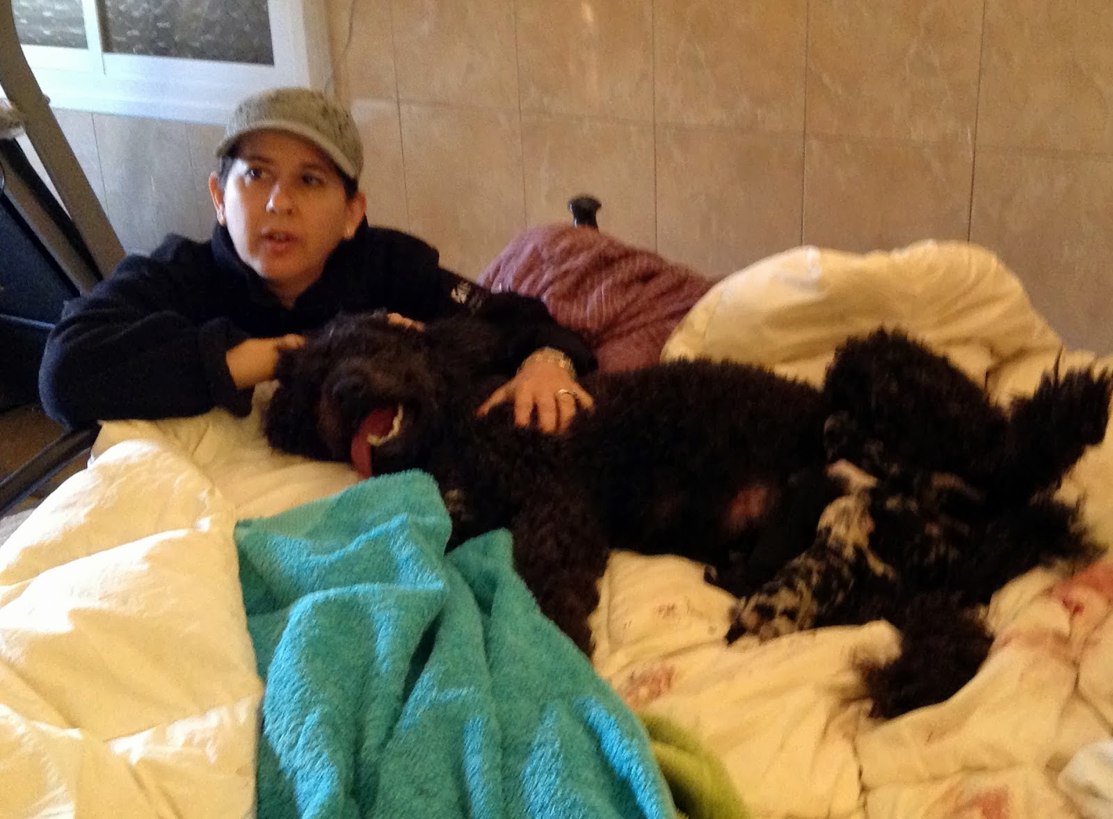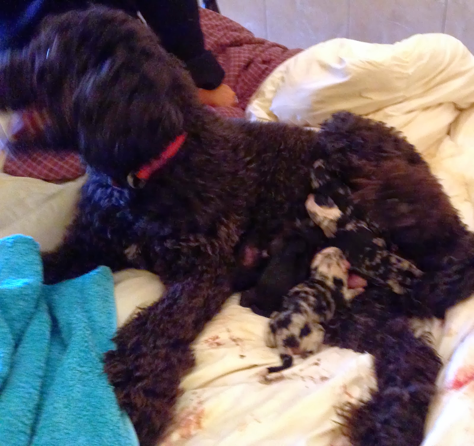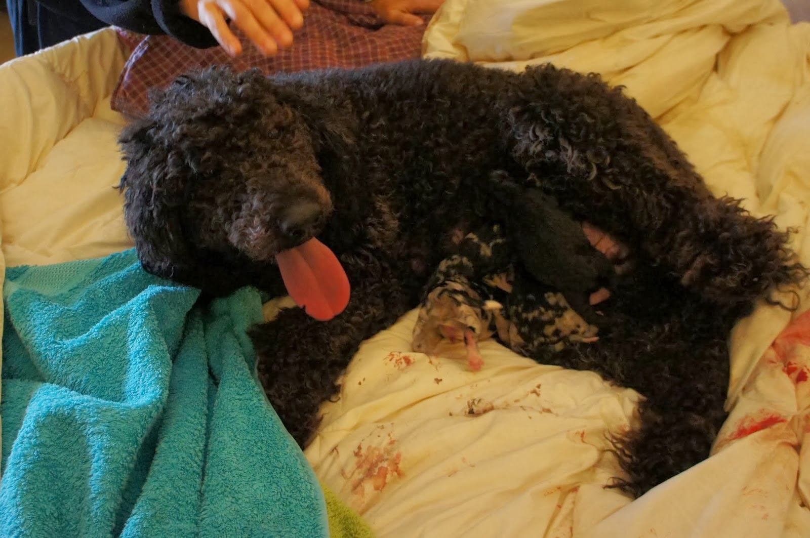 Molly, from Molly's first litter delivers her pups with her owner, Lori. So far, 7 pups