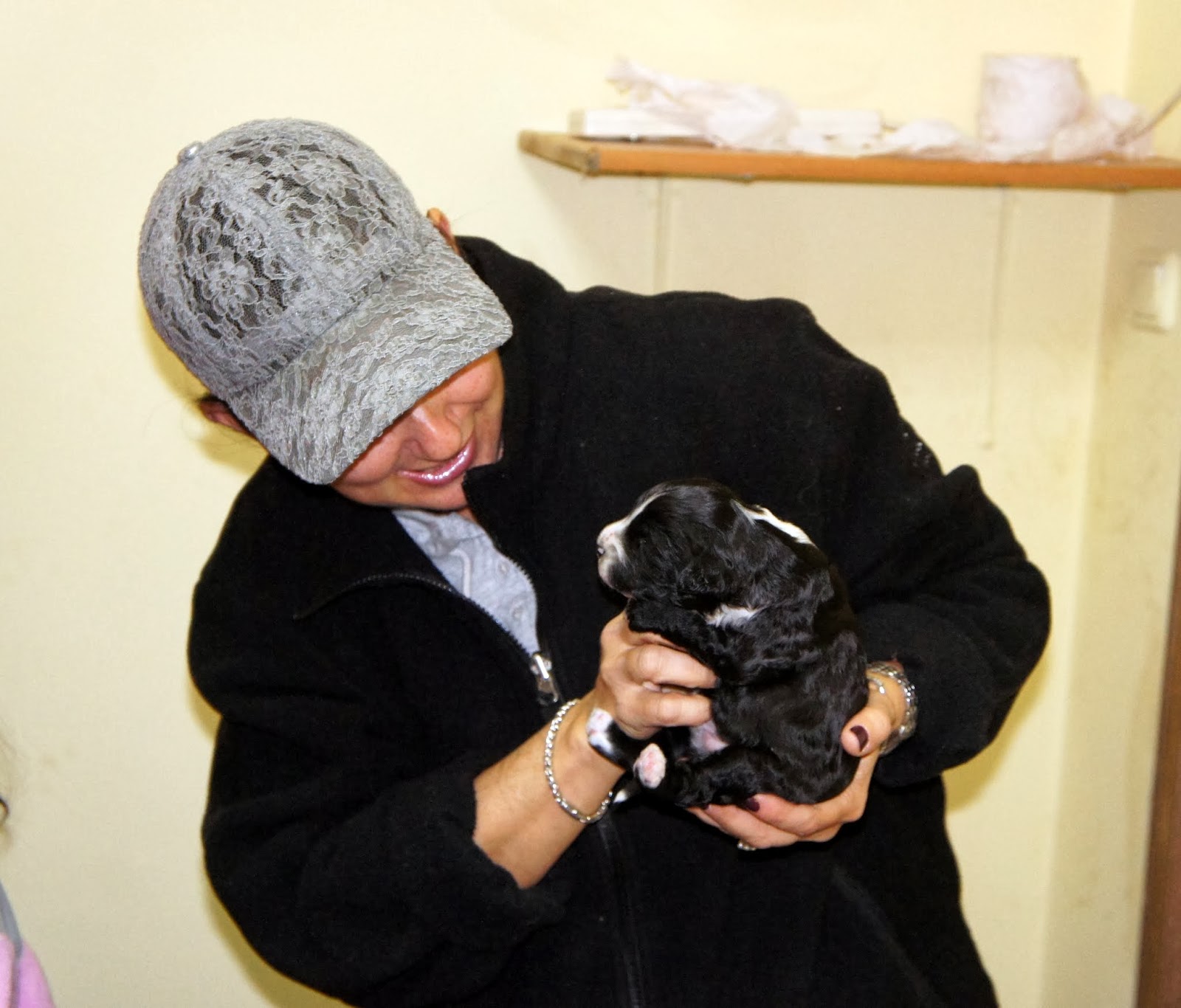 Lisa and girls come to visit Molly. Her 4 pups will be ready to go in 6 weeks